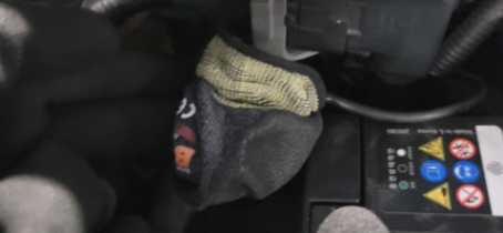 분리한 마이너스극은 안전을 위해 접촉이 안되도록 장갑으로 씌웠습니다.