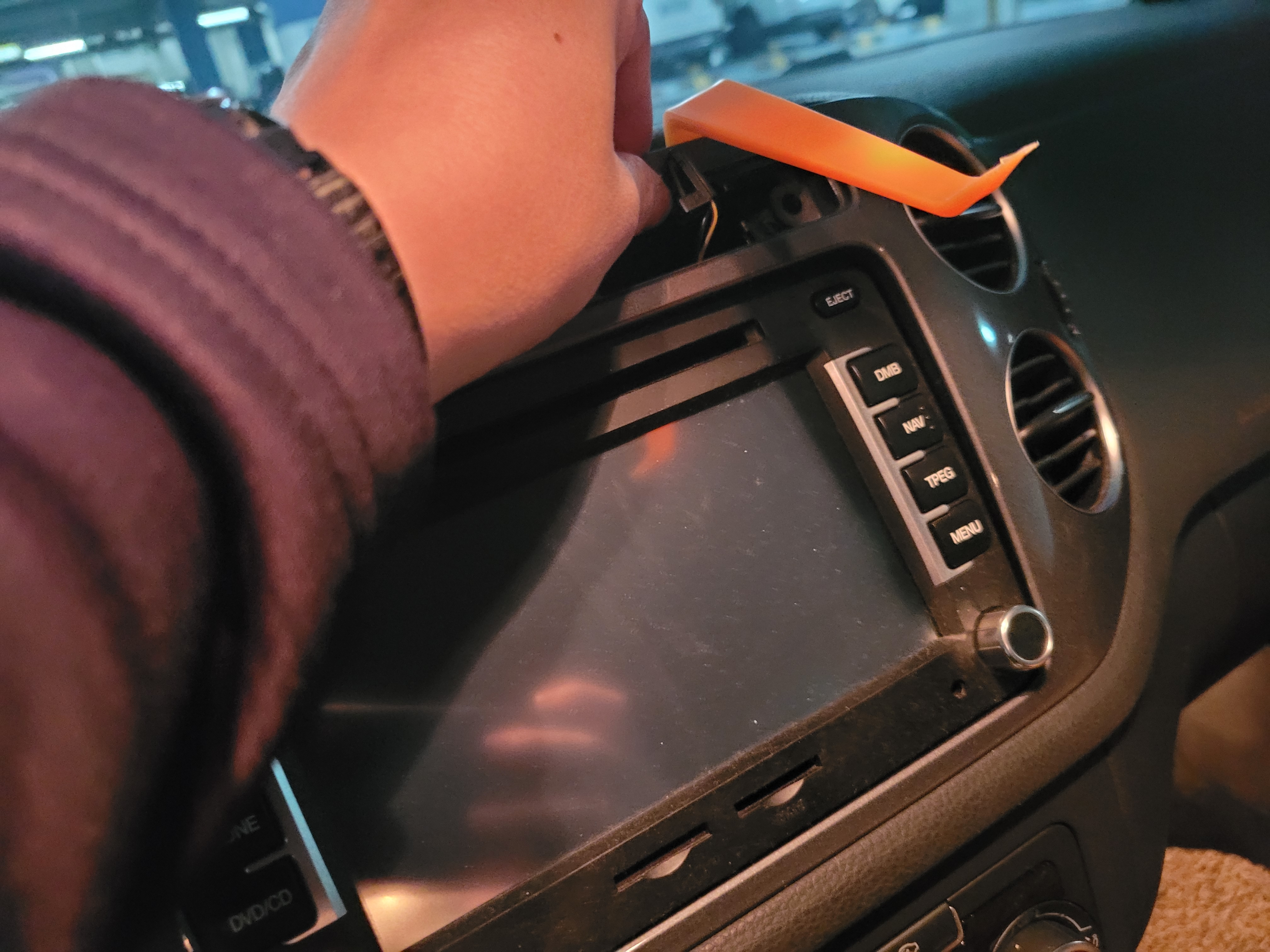 기존 네비게이션 탈거!! 폭스바겐 나사는 20T 별렌치가 필요합니다.